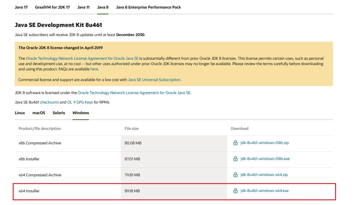 Download jdk-8u461-windows-x64.exe - 登录Oracle账户(没有账户需要先注册)