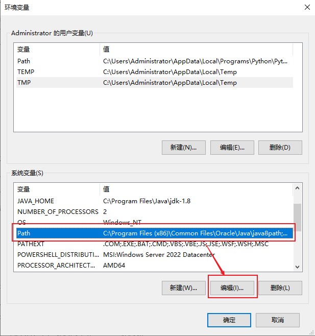 JAVA_HOME - 变量值: JDK安装路径(如: