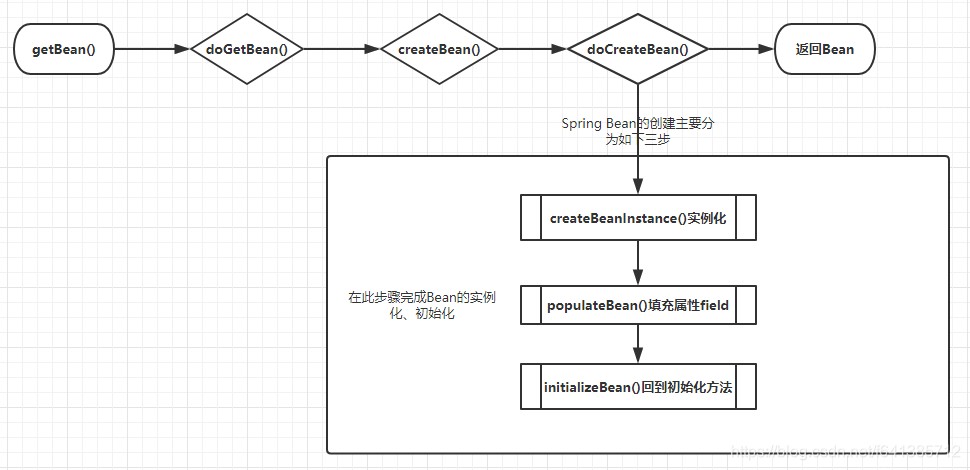 由初始化 单例Bean 的流程图可以看出,循环依赖主要发生在第二步(populateBean),也就是 field属性注入的处理