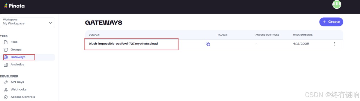 去到官网获取到网关,这里的网关是创建私钥的时候就自动会创建出来的。