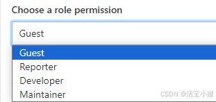 Guest:只有只读权限,可以查看项目内容,但不能推送代码、创建分支或创建问题。他们可以添加注释,例如对问题或合并请求的评论。