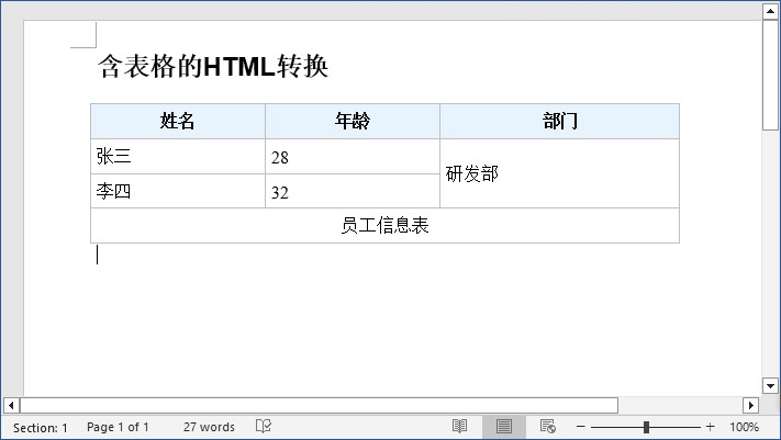 Document对象(Free Spire.Doc的核心文档模型),将解析后的HTML内容转化为文档的Section、Paragraph、Table等元素; - RTF导出:调用