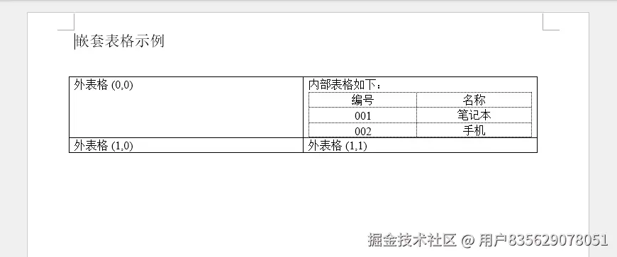 Console.WriteLine($"嵌套表格文档已生成:{filePath}");
