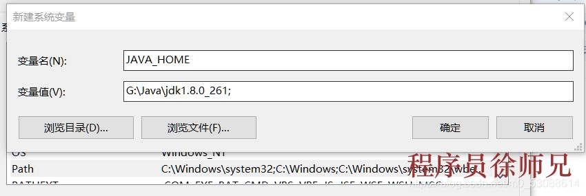 2.在系统变量框下面新建一个JAVA_HOME(直接复制过去)