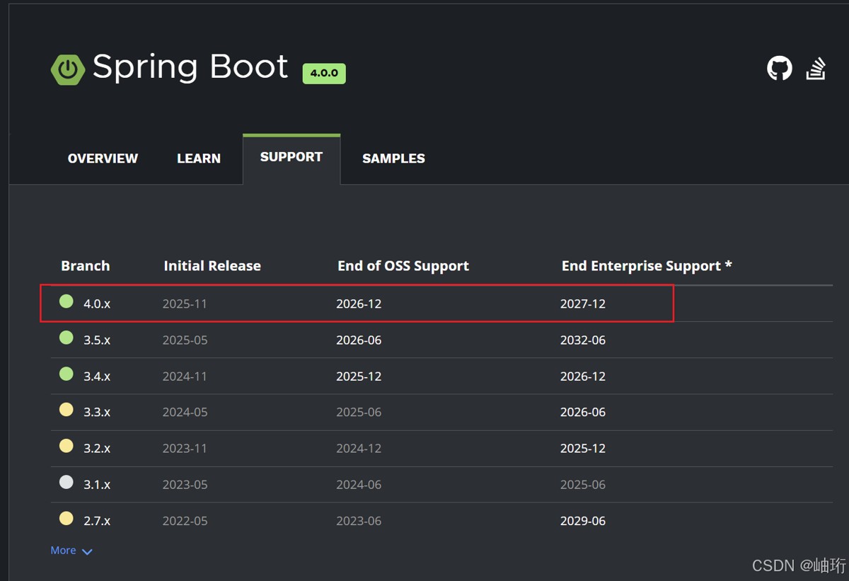 在Spring Boot官网上可以看到,4.0.0是目前的最新版本。不过需要注意的是,新版本往往存在更多的兼容性问题