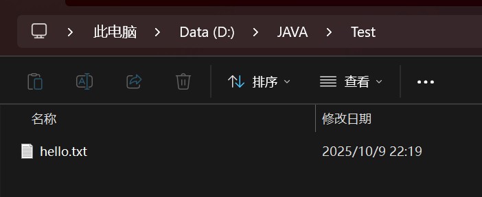 // File file = new File("./hello.txt");//这样就会在java当前文件中找是否有这个文件