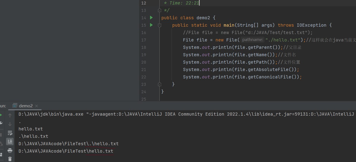 此时这里的File(String pathname)根据当前目录,其如果是相对目录的话 就是想对当前idea打开文件的路径