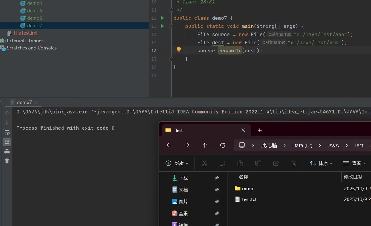 renameTo(File dest); //对文件进行改名,相当于文件的剪切和粘贴操作 //如果此时的目录是./aaa/bbb/ccc,这里对aaa文件夹进行改名是修改不了