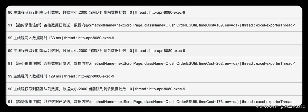 SXSSFWorkbook:替换传统的XSSFWorkbook,设置rowAccessWindowSize(如 2000),实现了磁盘换内存的流式写入,极大降低了内存压力。 - 精简数据字段:优化 ES 查询模板,只获取导出必需的字段,从源头上减少了单条数据大小和网络传输量。