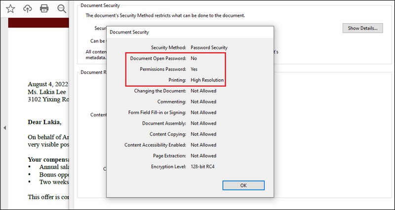 doc.SaveToFile("SecurityPermissions.pdf");