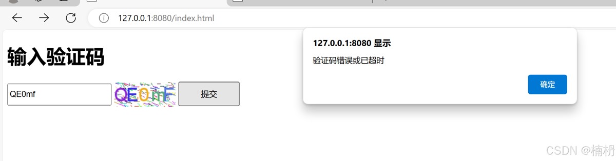 alert("验证码错误或已超时");