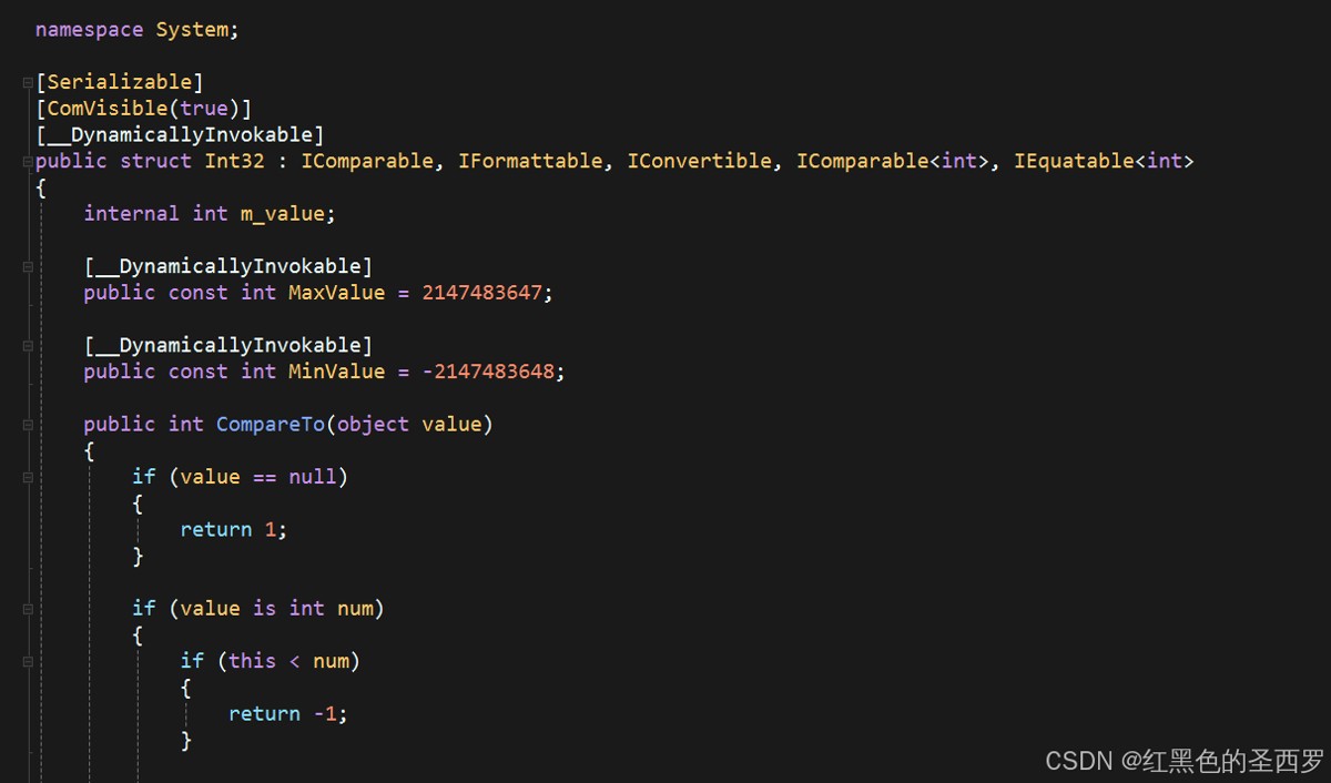 可以看到int实现了IComparable 的CompareTo方法,规则为小于返回-1,大于返回1,等于返回0,说明此时返回-1是升序,返回1是降序