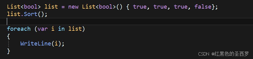 可以看到对于int类型默认是实现升序排序的,对于bool类型,false会排在true前面