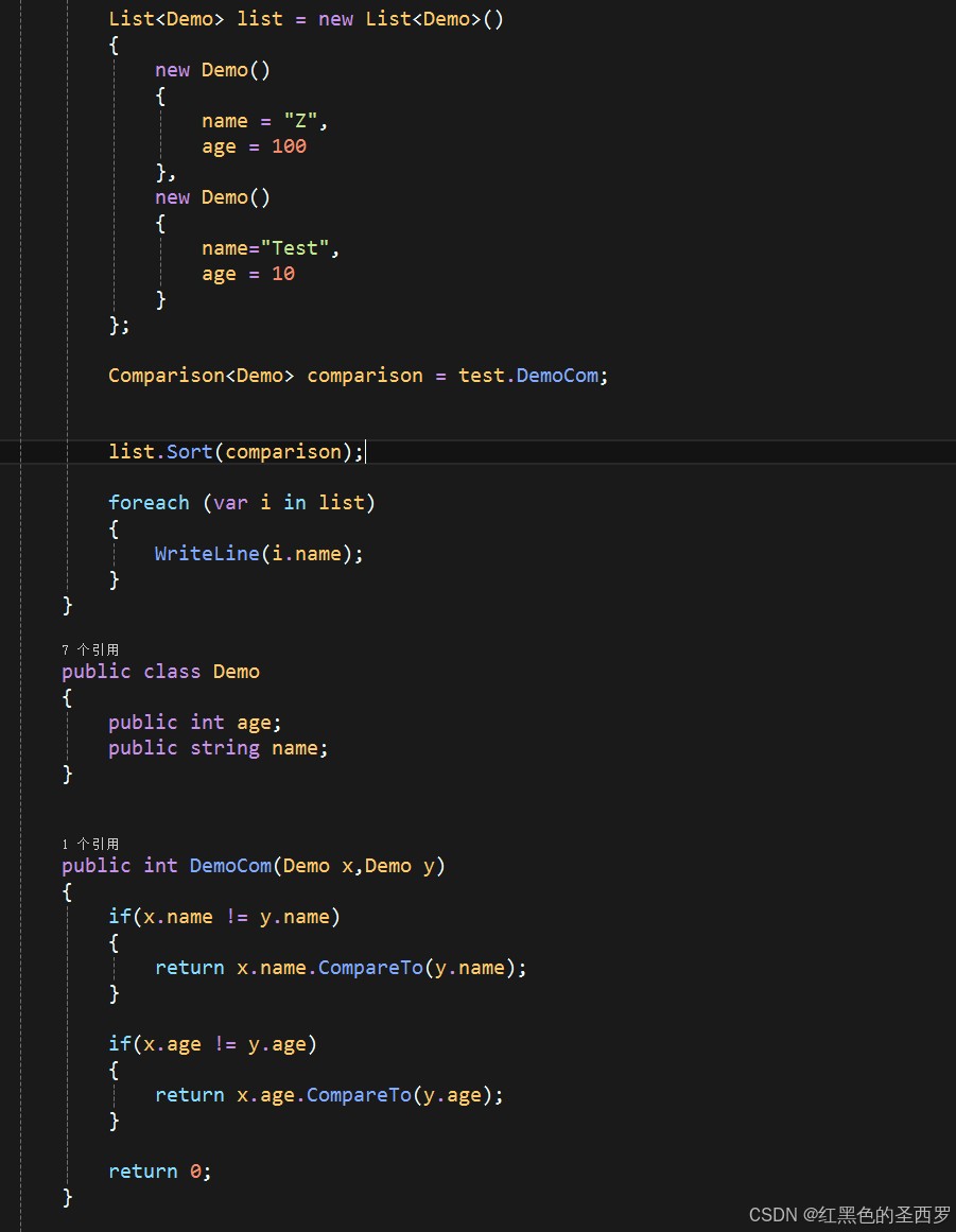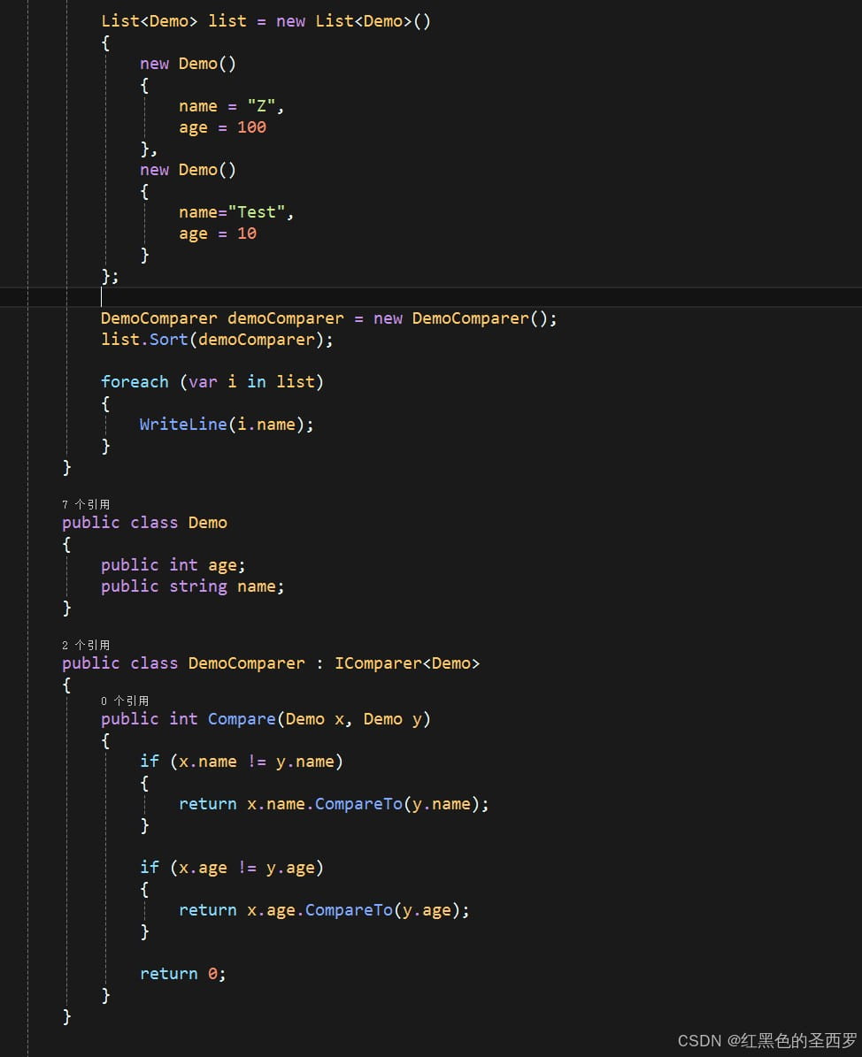 DemoComparer实现了IComparer接口,在内部实现了自定义的Demo类型的比较
