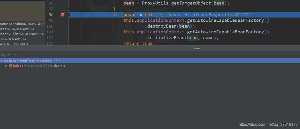 // 这里他把对象 销毁再创建 但是由于我只想刷新我自己的类 这里却把所有带ConfigurationProperties注解的都销毁重新创建