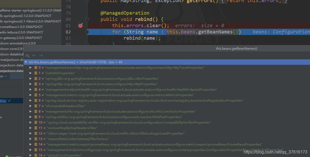 这时会触发ConfigurationPropertiesRebinder的onApplicationEvent方法进而触发rebind方法