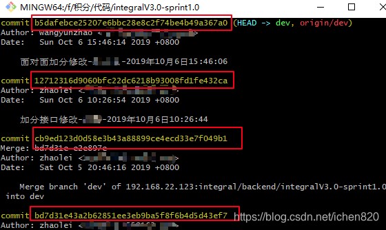 红色的事commitid。回滚需要这个id。要回滚到那个版本就复制那次提交的id。