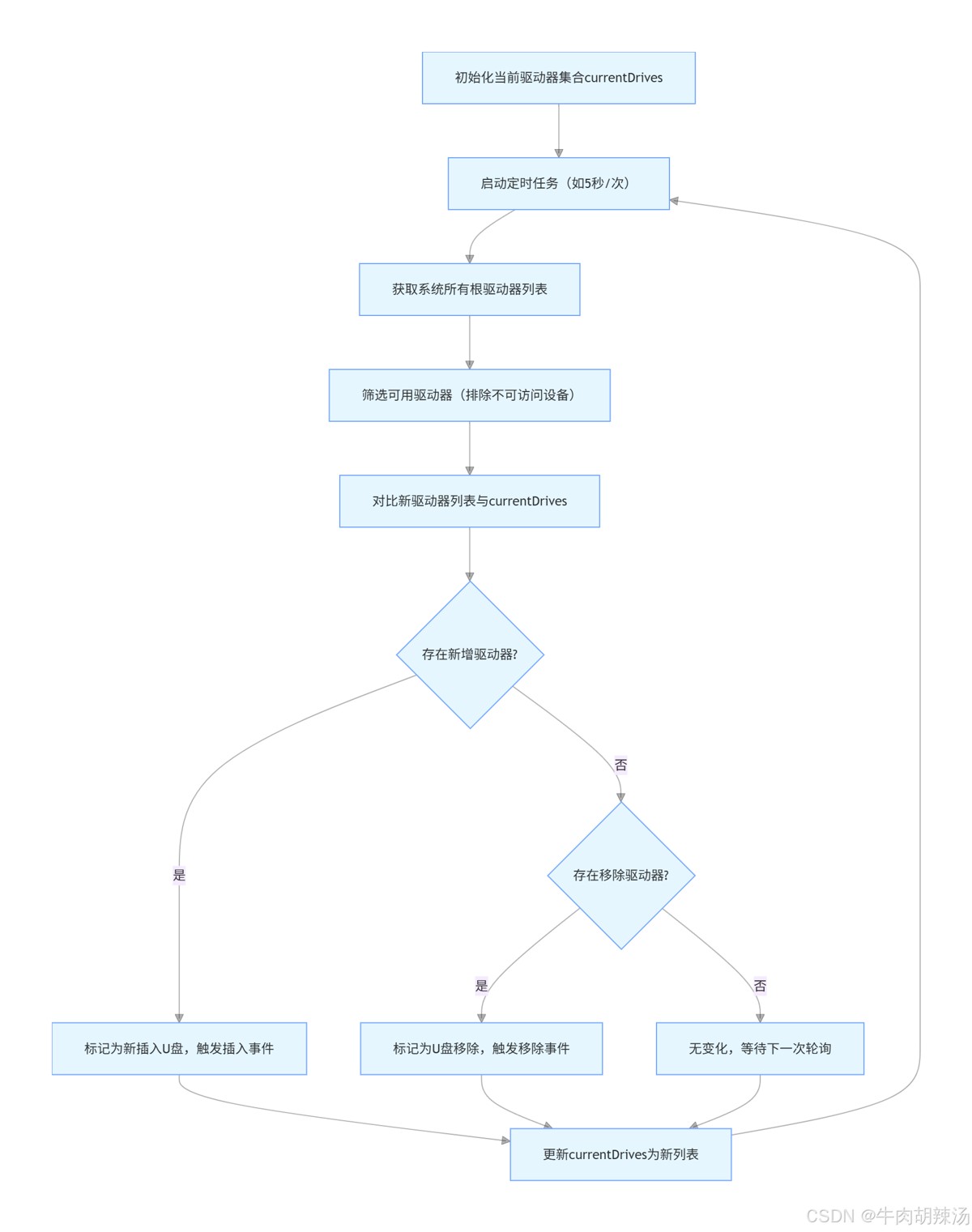 System.out.println("处理U盘移除事件: " + drive);