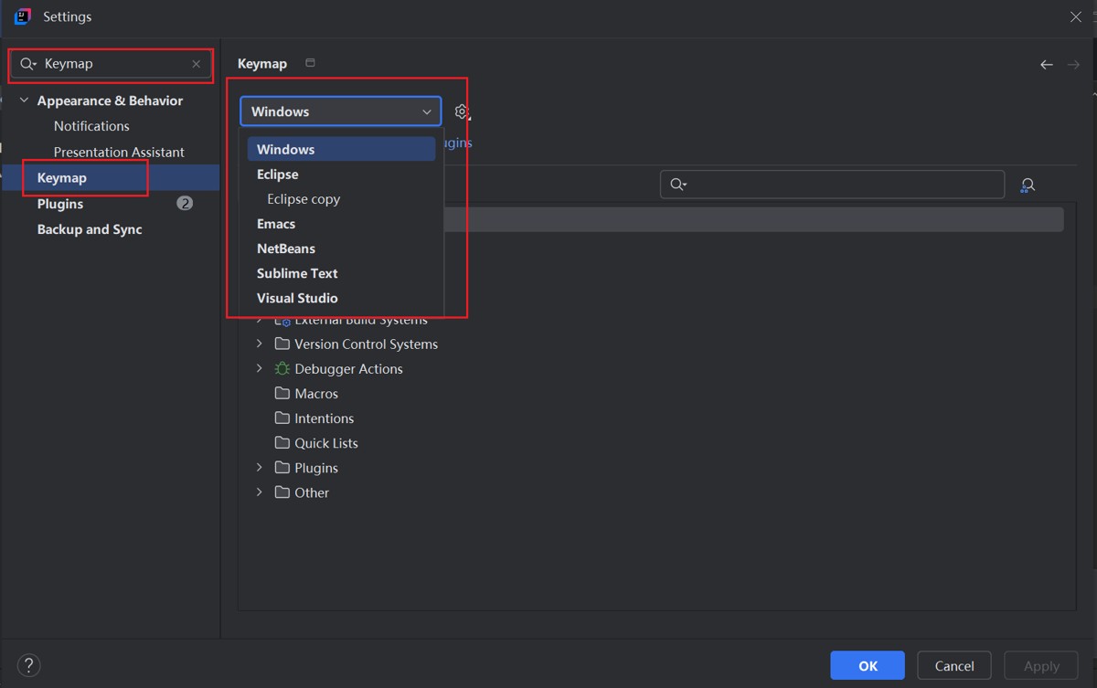 在设置页面左侧导航中选择 “Keymap”。