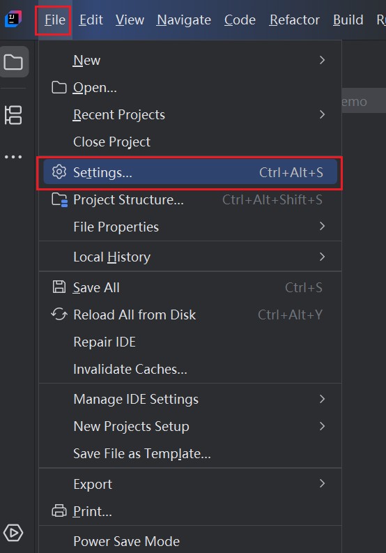 打开 IDEA,点击上方菜单栏中的 “File”。