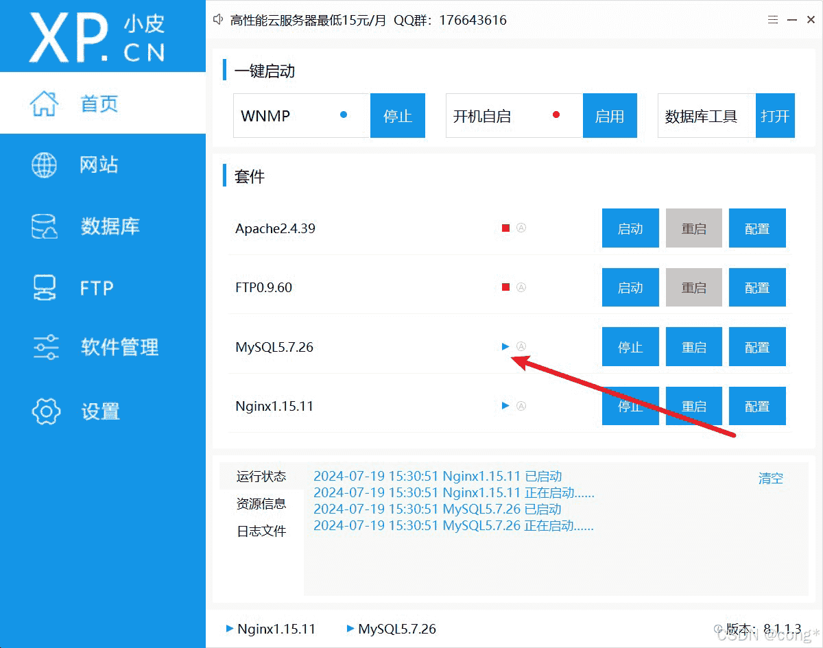 在PHPStudy的主界面中,点击“服务”选项卡,确保MySQL服务已启动。如果没有启动,点击“启动”按钮。