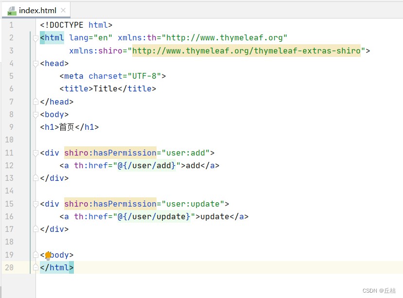 ②在首页设置add和update链接,拥有对应权限才可以访问