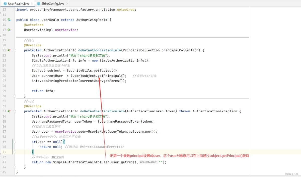 6、把之前在UserRealm中直接写的name和password,改成从数据库中查出来的