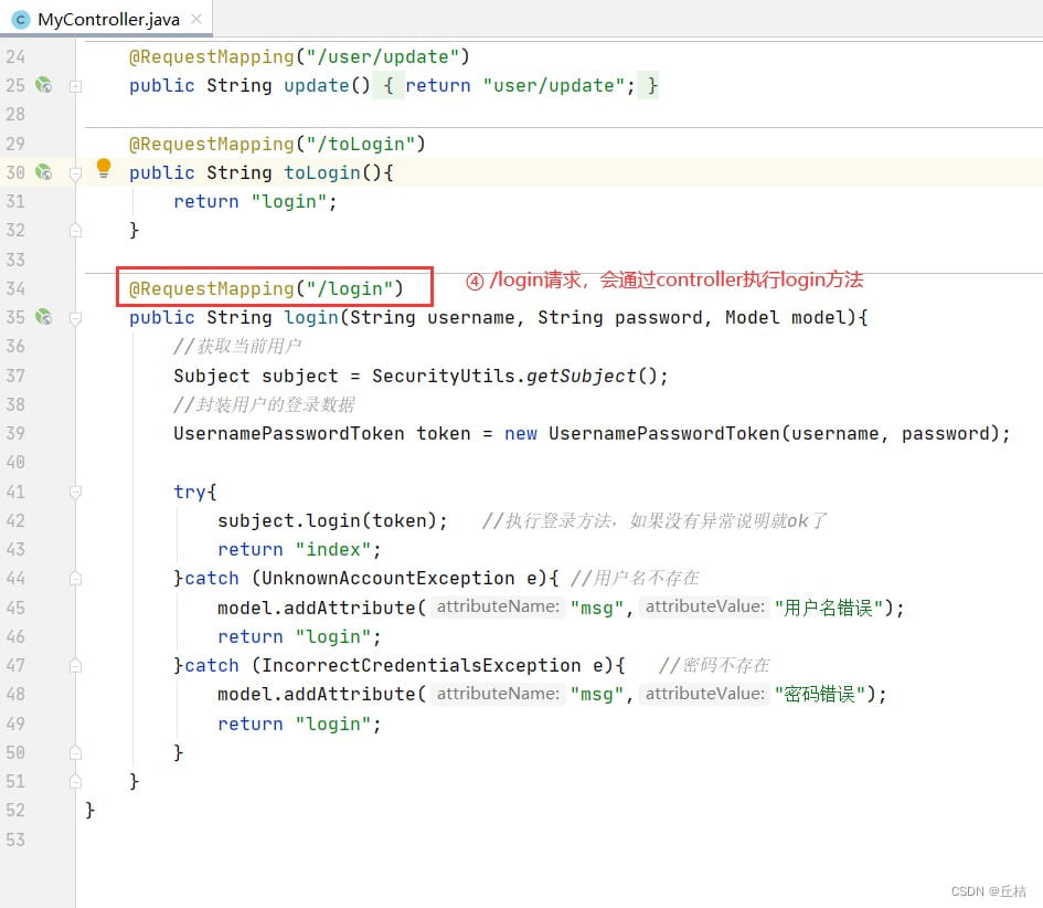 filterMap.put("/user/add","perms[user:add]"); //拥有 user:add 权限才能访问/user/add