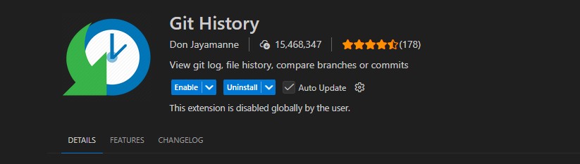 这个插件可以帮助我们查看git日志、文件历史记录、比较分支或提交,对于项目多人协助和定位bug非常有用。