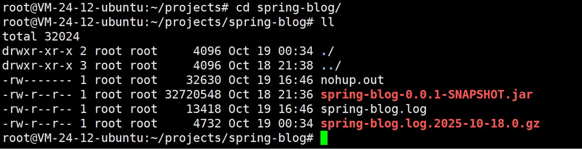 nohup java -jar blog-spring-0.0.1-SNAPSHOT,jar &