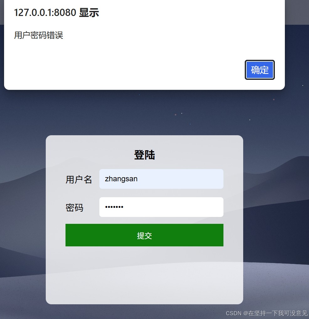 当输入不为123456时提示密码输入错误,