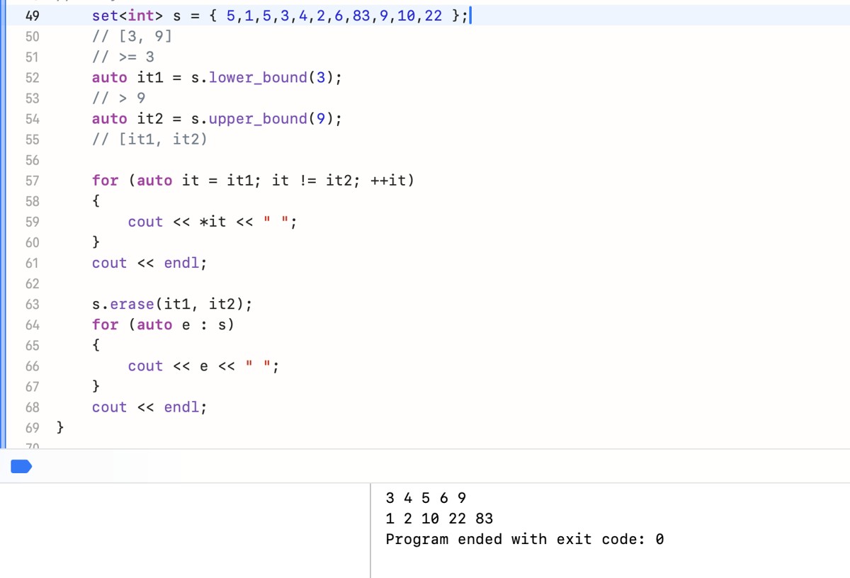cout << "val=4时,[lb, ub)区间长度:" << distance(lb, ub) << endl; // 输出0(无元素)