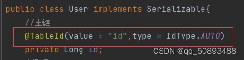 PS: 很多人添加了上图注解后,添加User后仍然发现生成的id是19位的数字,其实并不是因为这个@TableId没生效,而是因为数据库保留了之前雪花算法id的最大值,从此以后就以这个最大值为基础进行自增。