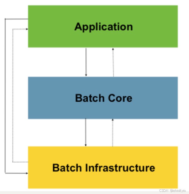 Spring Batch 核心架构分三层:应用层,核心层,基础架构层。
