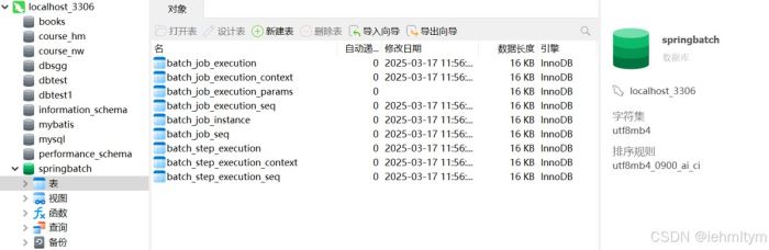 批处理允许重复执行,异常重试,此时需要保存批处理状态与数据,Spring Batch 将数据缓存在H2内存中或者缓存在指定数据库中。入门案例如果要保存在MySQL中,所以需要配置数据库四要素。