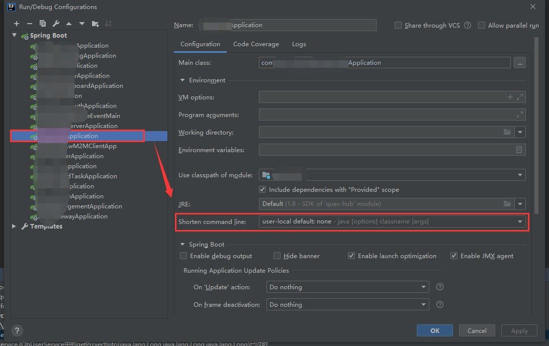 3、将项目的 Shorten command line 修改为 classpath file