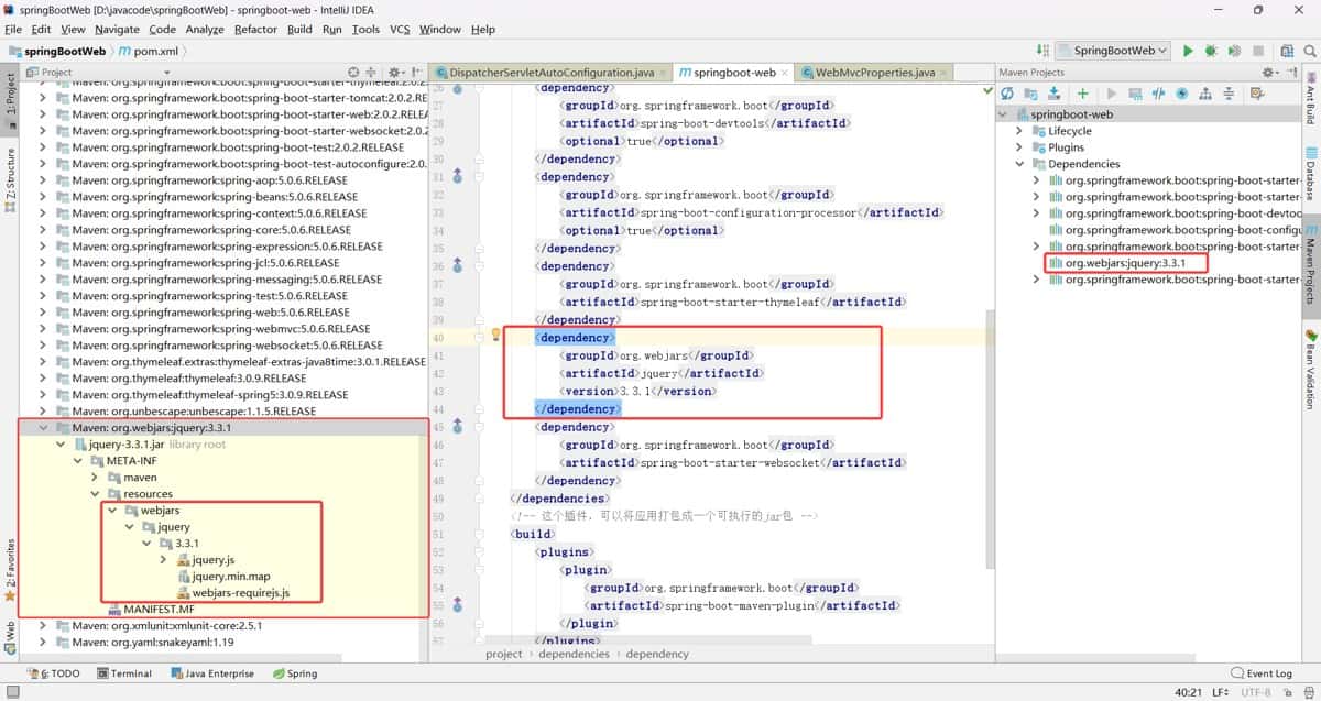 访问方式是访问 classpath:META-INF/resources/webjars/ 目录下的内容,例如访问 jquery 的路径为:localhost:8080/webjars/jquery/3.3.1/jquery.js