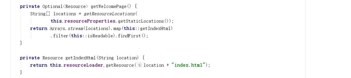 另外,如果通过 spring.web.resources.staticLocations 自定义了静态资源目录,getWelcomePage() 也会在自定义目录中查找 index.html