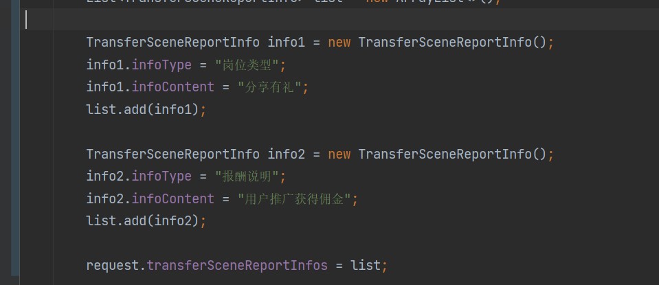 public List<TransferSceneReportInfo> transferSceneReportInfos = new ArrayList<TransferSceneReportInfo>();