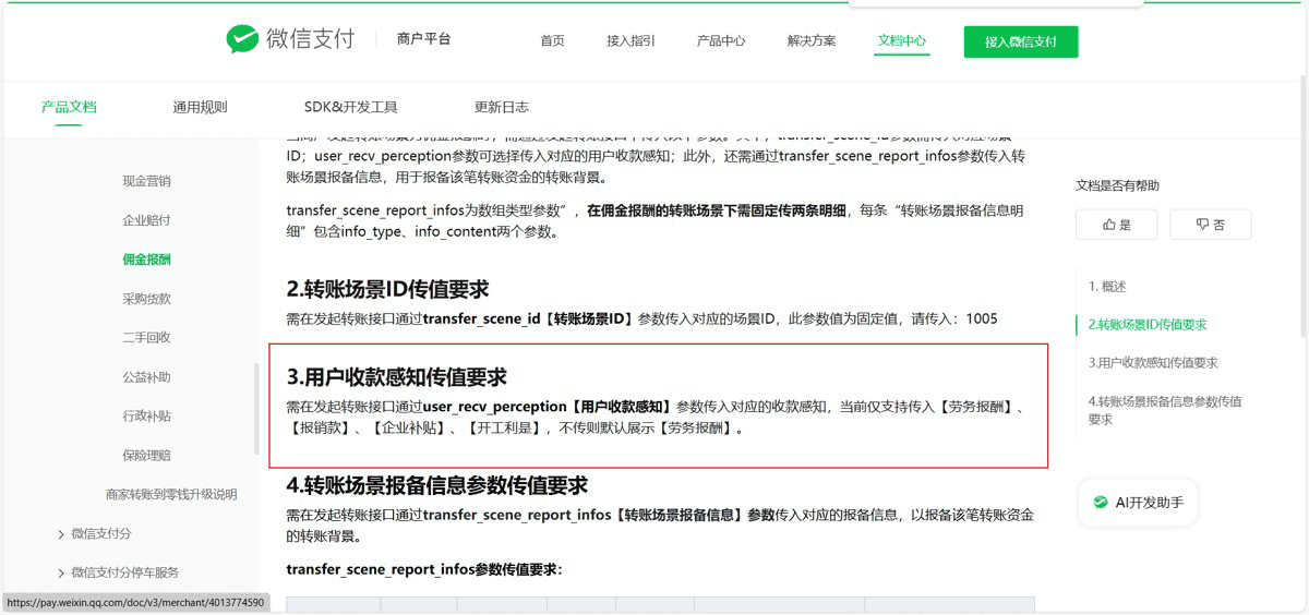 用户收款感知 说白了就是当微信把钱打给用户时,在用户微信里展示一些“这是什么钱”的提示。对应字段:user_recv_perception