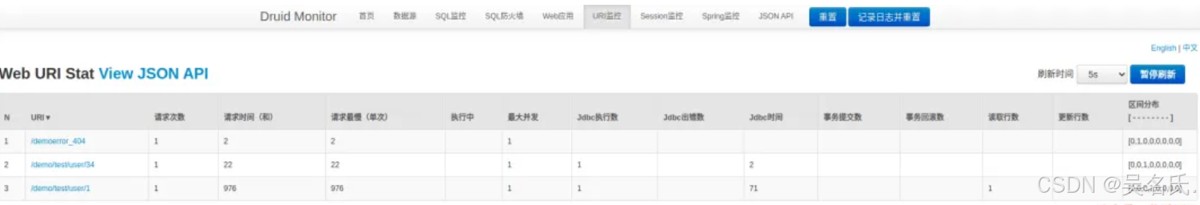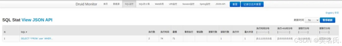 (3) SQL监控页面 ,统计了所有SQL语句的执行情况