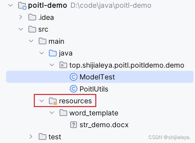 这里使用的所有 docs 模板文件,我都存放在 resources 的目录下。
