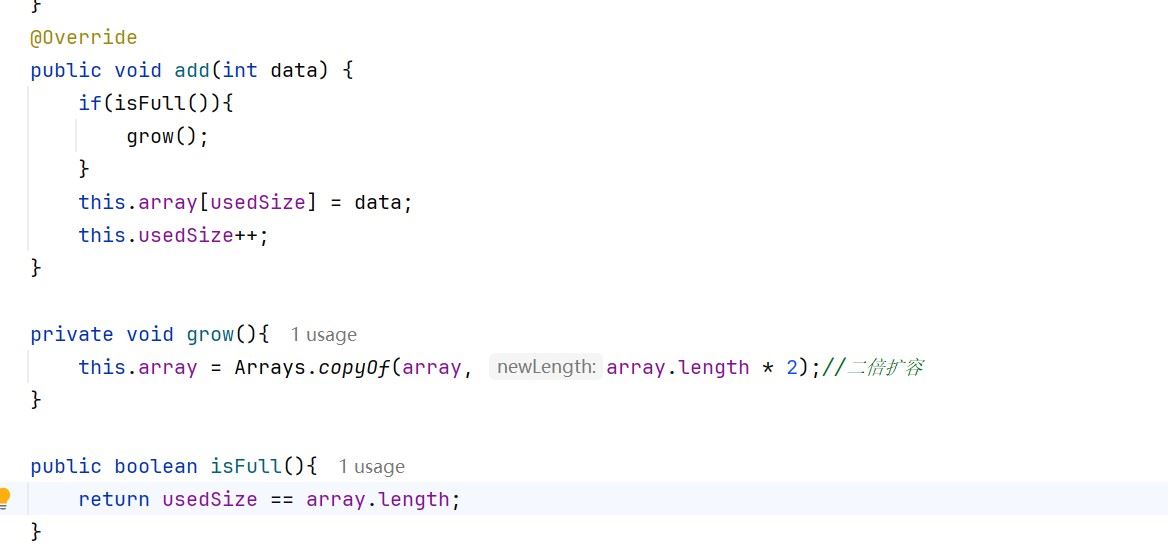 如果满了,那我们就使用grow来进行扩容,这里使用的是二倍扩容,这里的grow用的是private修饰符,毕竟使用者也无需触碰到扩容