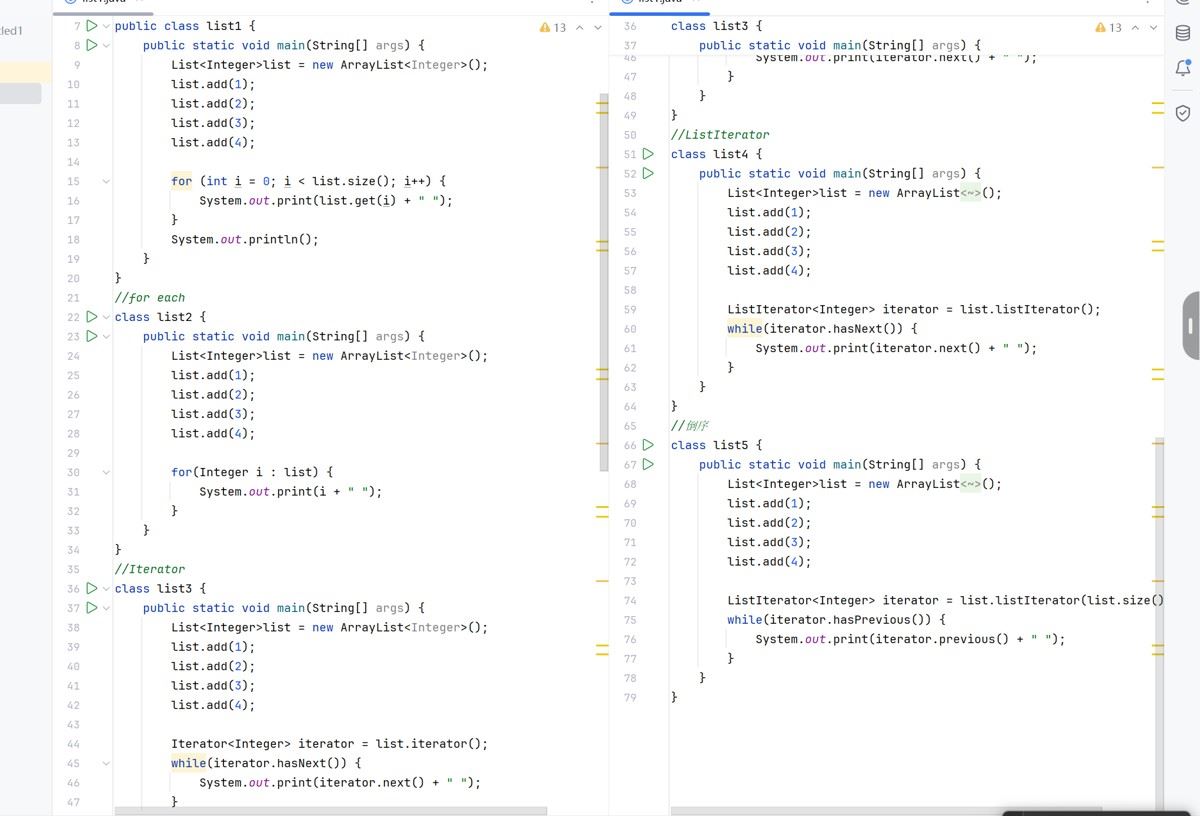 其中Interator可以延伸出其他用法,ListInterator是Interator用法的延伸