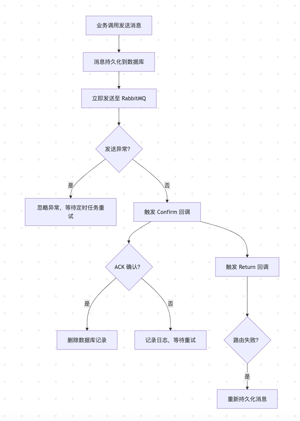 - 确保消息在RabbitMQ投递过程中的可靠性,通过持久化存储、回调处理和定时重试解决网络异常、服务宕机等场景下的消息丢失风险