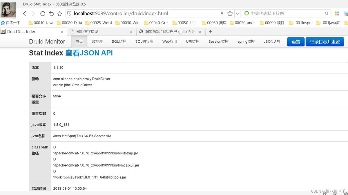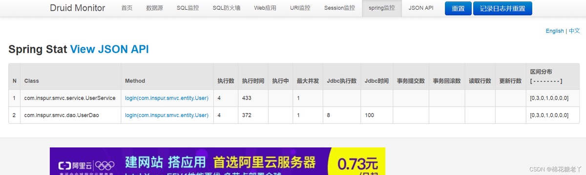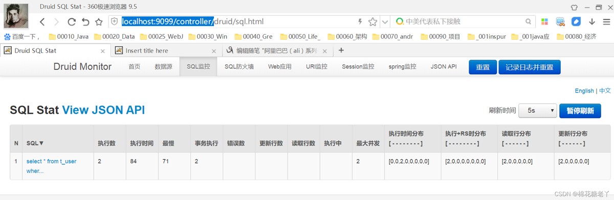 <!-- 阿里druid Spring监控 end --> 再次查看spring监控页面,已经有了数据: