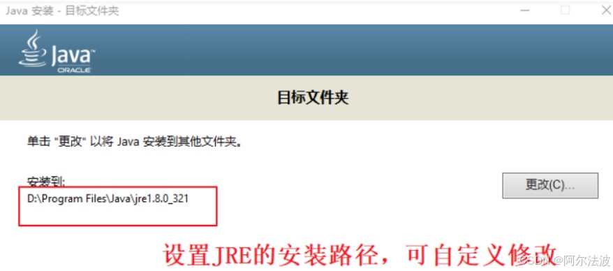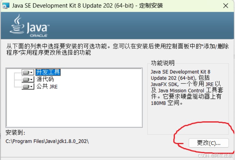 f. 点击更改如下所示,改到新建的文件夹 jdk-8 ,点击确定