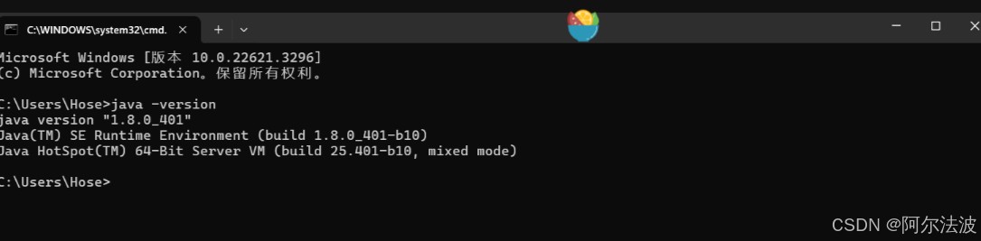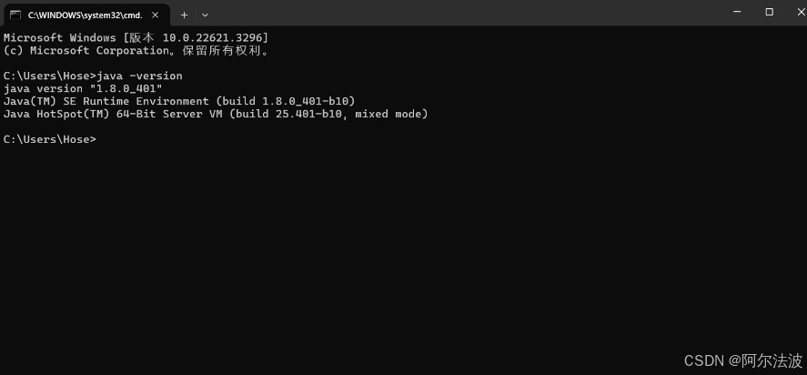 一路确定关闭打开的,重新打开一个新的命令窗口,输入 java -version,就会复现 JDK8,如下图所示