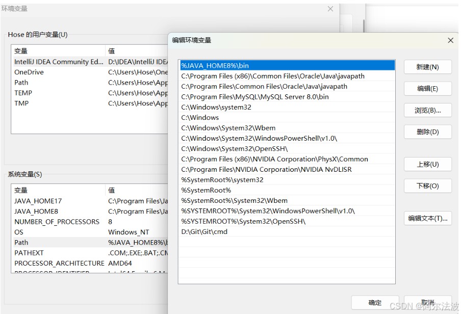 经过了前面两次的展示,相信小伙伴们已经学会了,还是去path修改 "%JAVA_HOME17%\bin" 改为 "%JAVA_HOME8%\bin";