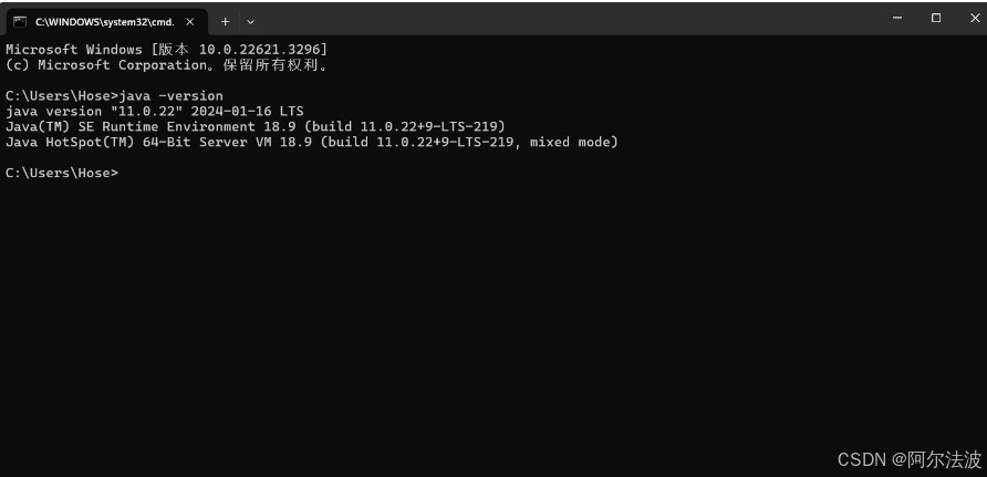 然后我们打开命令窗口,再次输入 java -version 命令,就会看到当前系统的JDK版本为JDK11,很神奇把!